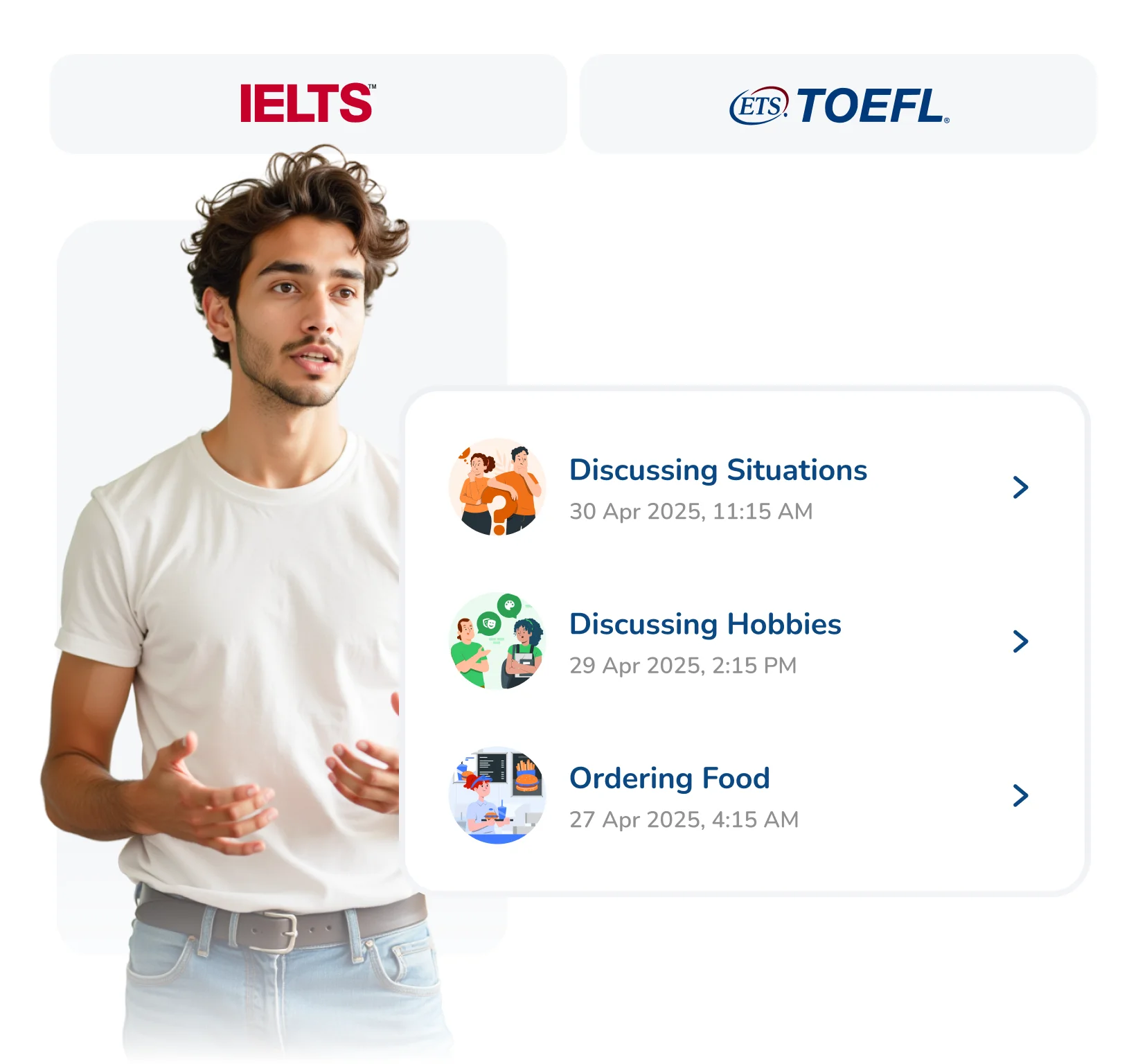 Speaking performance heavily influences overall results in both IELTS and TOEFL. Common challenges include keeping fluent under time pressure, improving pronunciation, and organizing responses clearly. Learna AI recreates exam speaking conditions with timed prompts, varied question types, and roleplays that match test formats. Interactive sessions cover Part 1–3 scenarios for IELTS and integrated speaking tasks for TOEFL, helping learners build timing strategies and reduce hesitation. Start practising speaking tests interactively with Learna AI for measurable fluency improvement and targeted error correction.